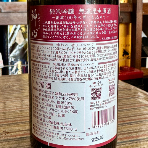 神心 純米吟醸 無濾過生原酒【限定】【クール便】