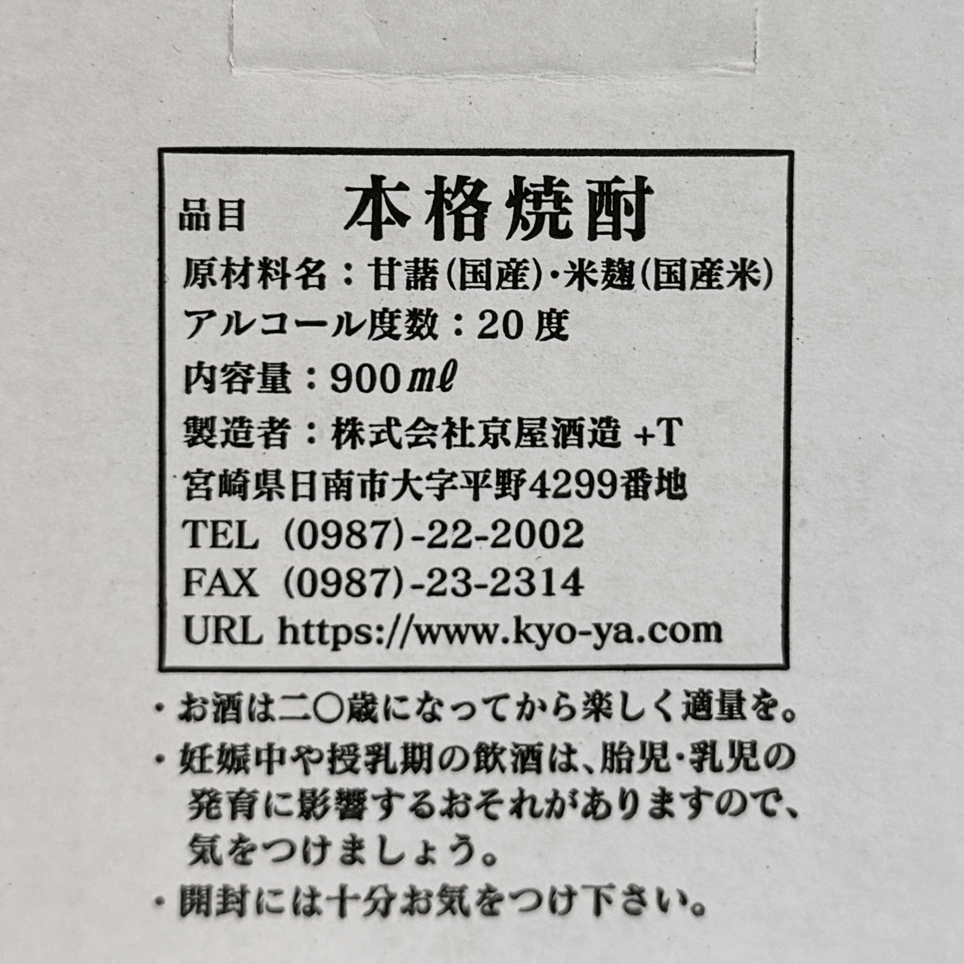 甕雫 20度 京屋酒造 宮崎県